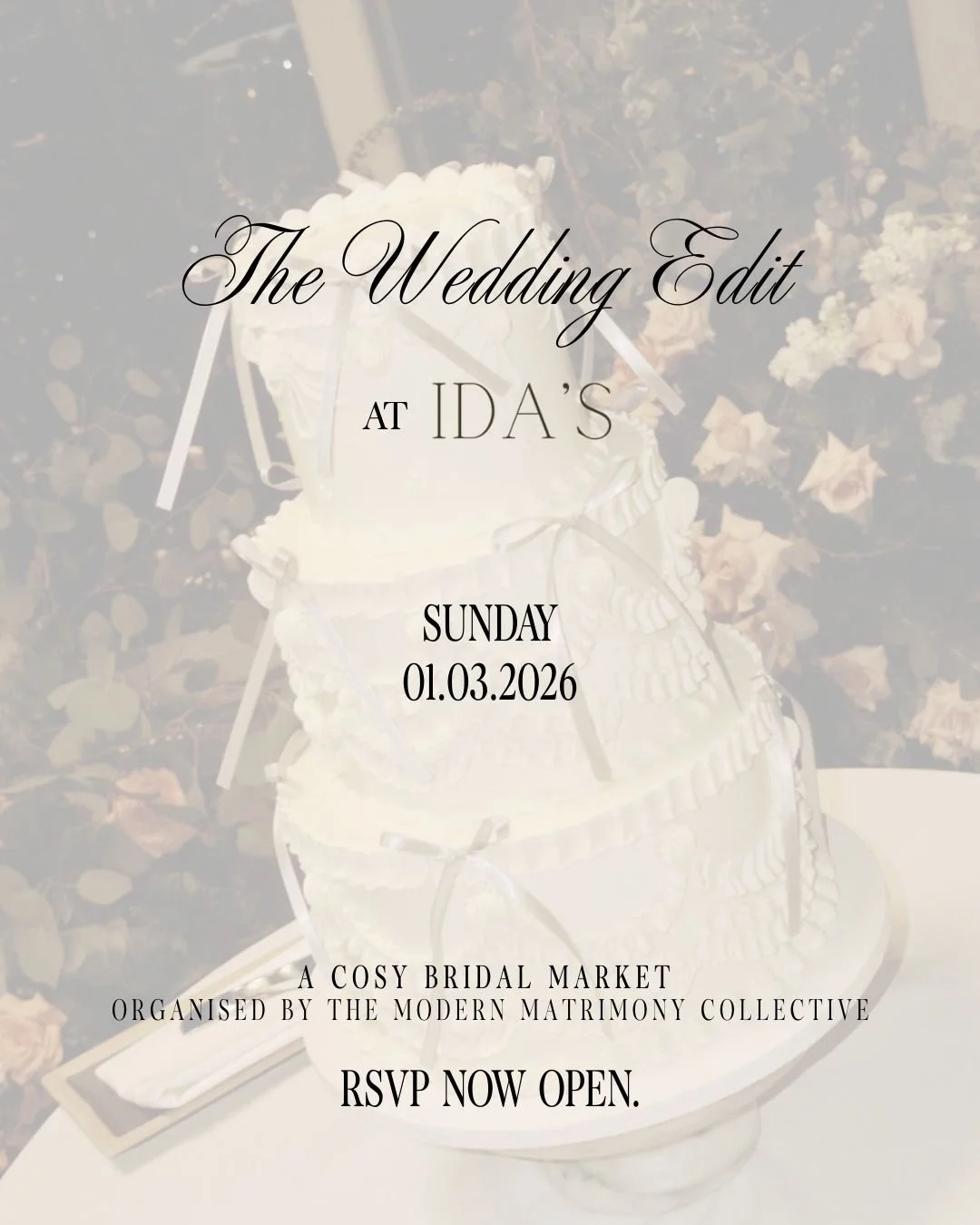 The Wedding Edit is a thoughtfully curated wedding fair designed for couples who want to plan with clarity, not overwhelm. It’s an intimate, design-led experience where you can meet a trusted circle of wedding professionals in a relaxed, unhurried setting.Taking place on Sunday, 1 March 2026 at Ida’s, the afternoon is designed to feel more like a slow, meaningful planning session than a traditional wedding expo. Expect warm conversations, considered details, and a space that invites you to linger, ask thoughtful questions, and explore what truly matters for your celebration.Unlike conventional wedding fairs, The Wedding Edit is intentionally small and carefully curated. Each vendor has been selected for their craft, approach, and ability to offer couples genuine guidance rather than sales pitches. There’s room to connect, to imagine, and to plan with ease.If you’re at the early stages of planning or refining your vision, this is an opportunity to meet experienced professionals, gather inspiration, and leave feeling grounded and confident about your next steps.RSVP via Eventbrite to reserve your spot.